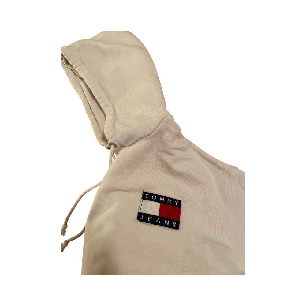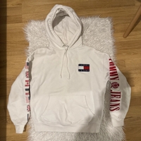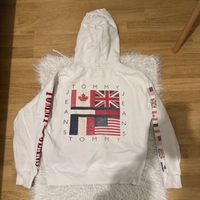 Tommy Hilfiger-huppari selkäprintillä, koko xs, sopii hyvin s🤍 taskun ja hihan kohdalla minimaalisen pieni reikä