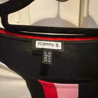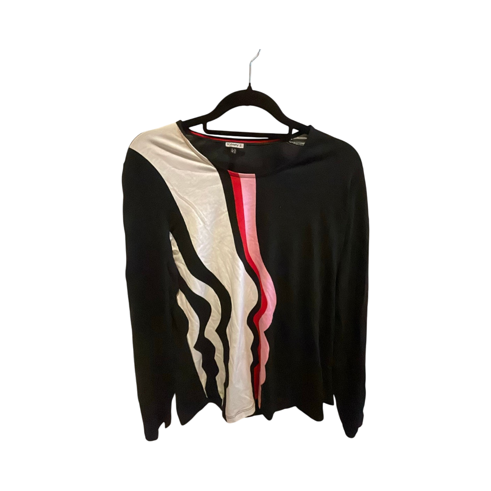 Kevyt pitkähihainen neule värikkäällä raidalla.