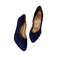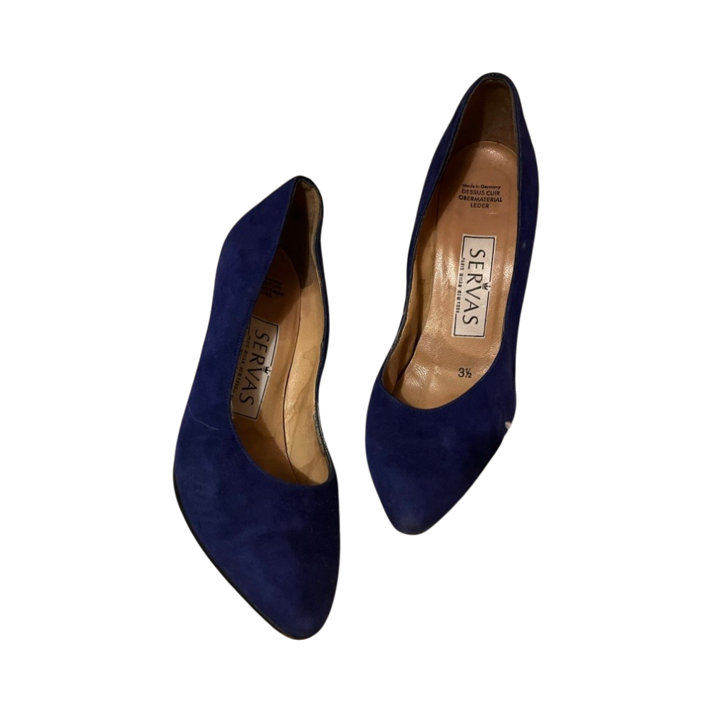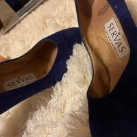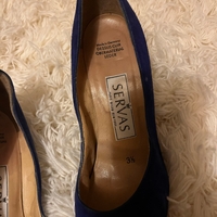 Siniset mokka-avokkaat, pieni kulumaa pohjissa. Aitoa nahkaa. Kulumaa myös koroissa. Korot vahvat terästä. Merkki: servas. Made in Germany