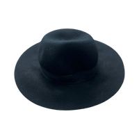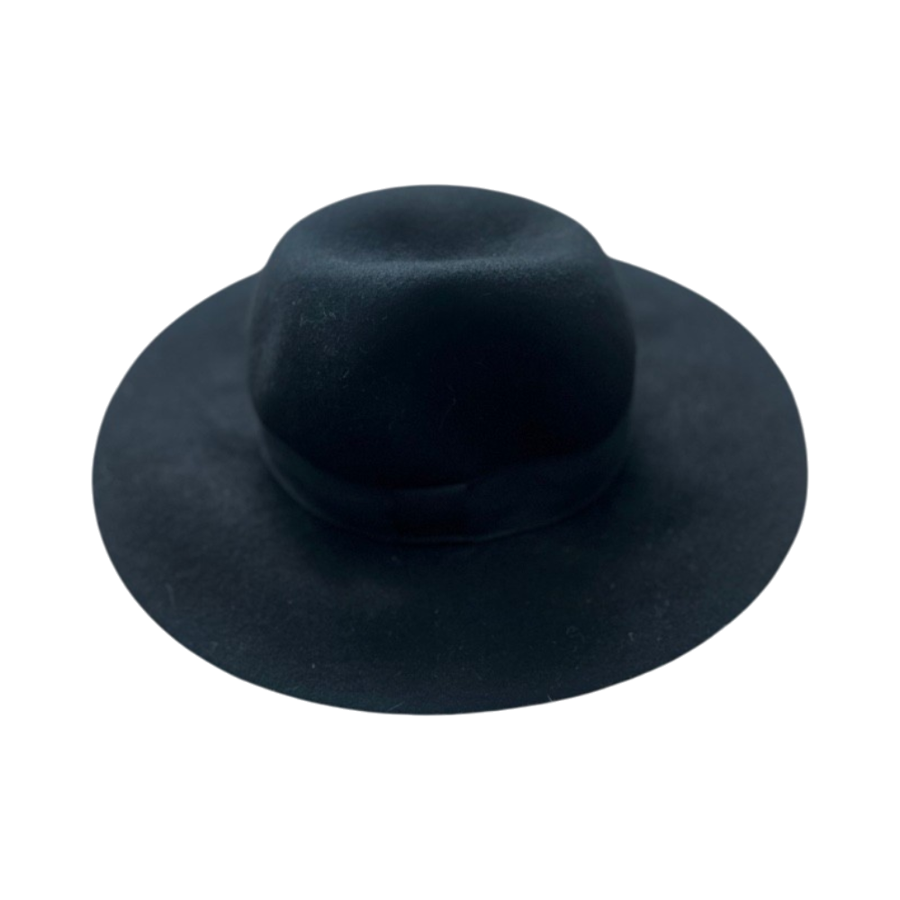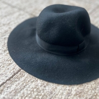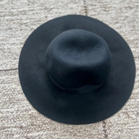 Naisten musta villahattu leveällä reunalla, kokomuotoiltu.