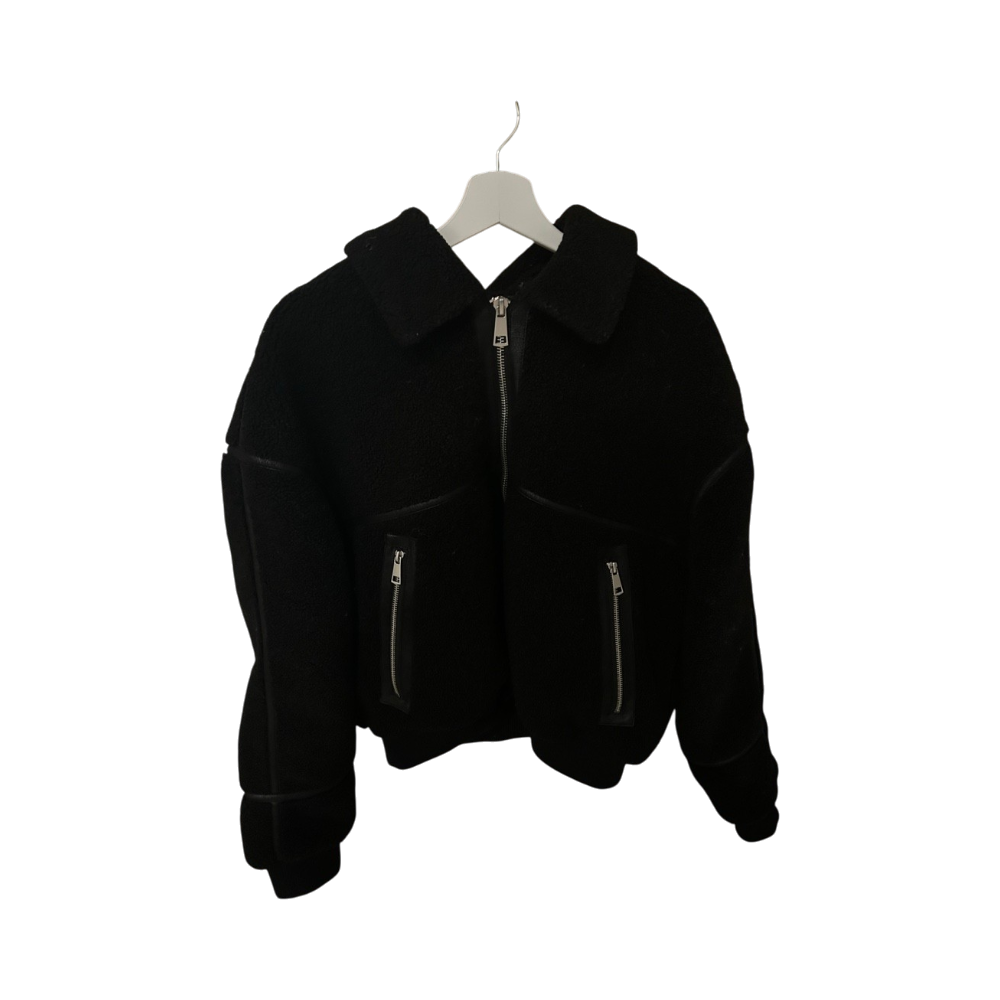 Lyhyt musta teddy-vuoritakki, vetoketjulla ja taskuilla. Vähän käytetty koko s-m