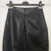 Mustan tekonahkahame, pieni halkio edessä. Hieman reilua kokoa.