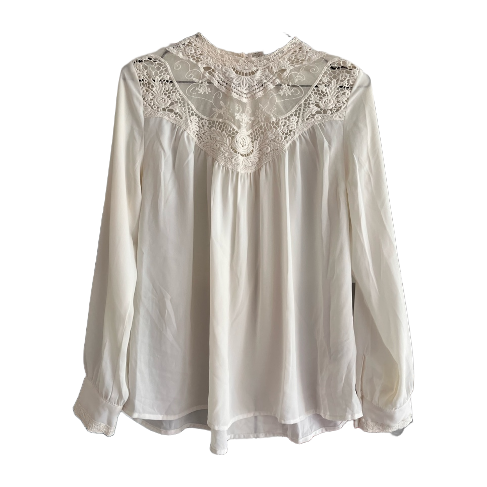 Myydään Cubuksen valkoinen pitsipusero. Käytön jälkeä nähtävissä vähäisesti kainaloissa, mutta ei huomaa käytössä.