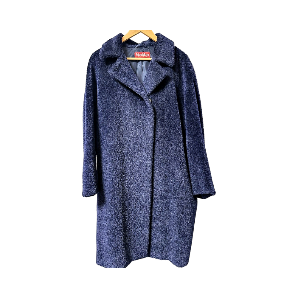 Cozy and stylish navy coat, ideal for winter wear.