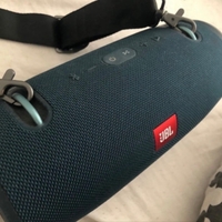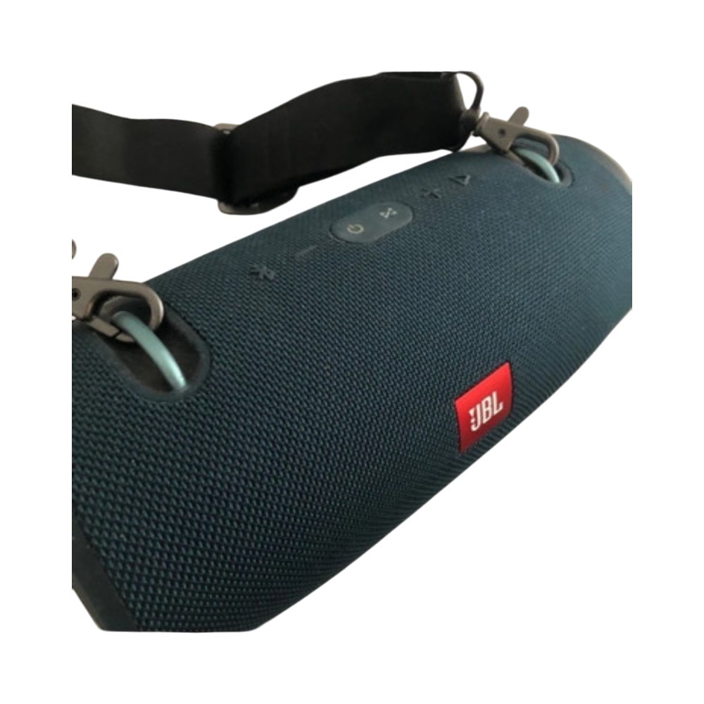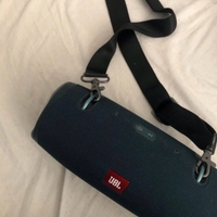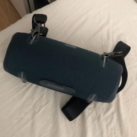 Large portable Bluetooth speaker with shoulder strap, good condition.