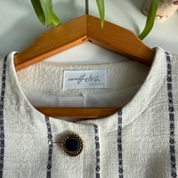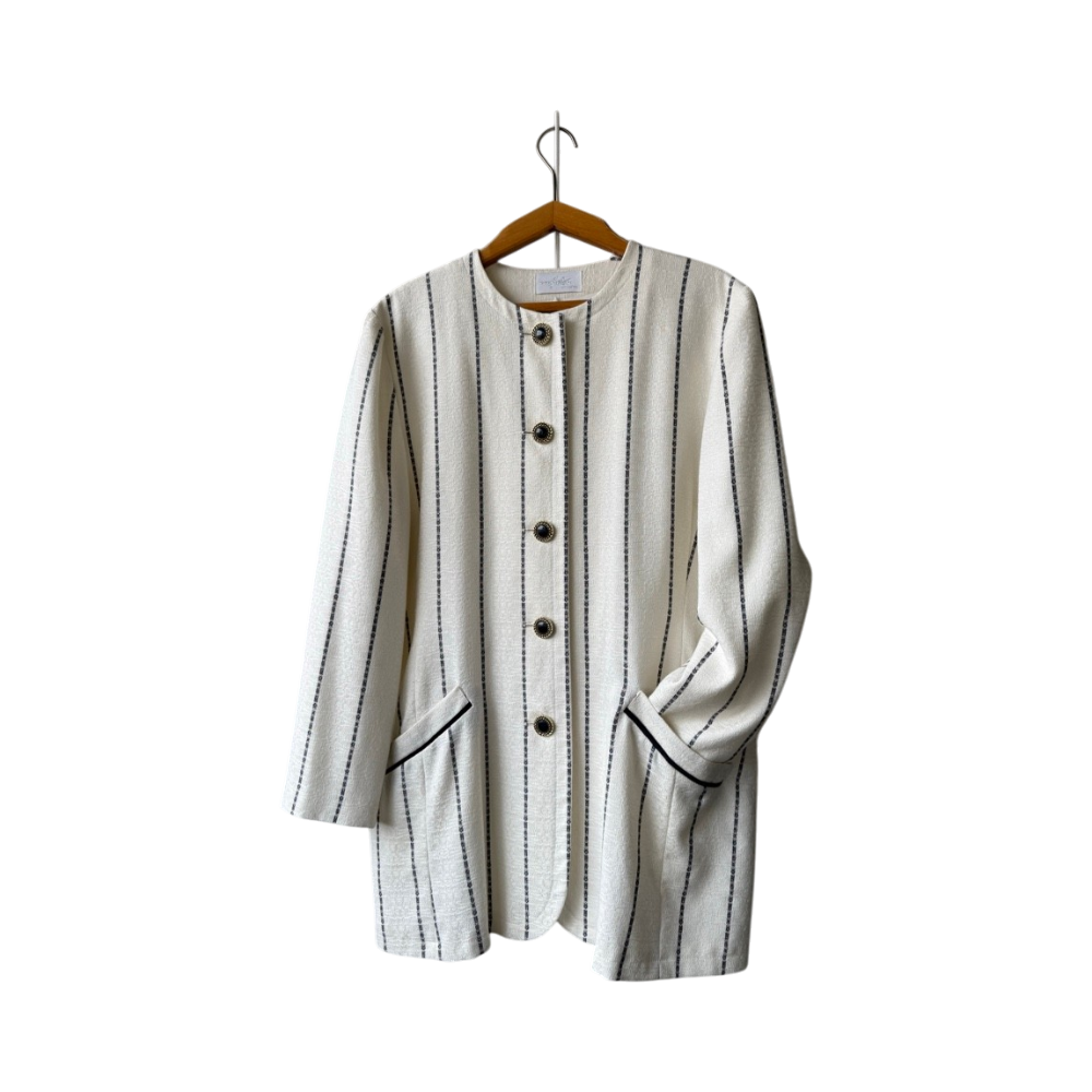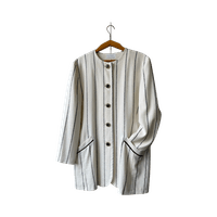Vaalea villasekoitteinen vintagebleiseri. Koko 42, kainalo-kainalo 56 cm ja pituus 83 cm.