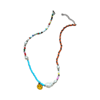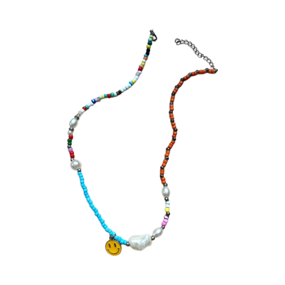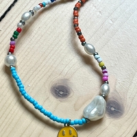 Värikäs helmikaulakoru, smile-riipus ja tekopearlit😊