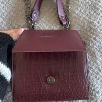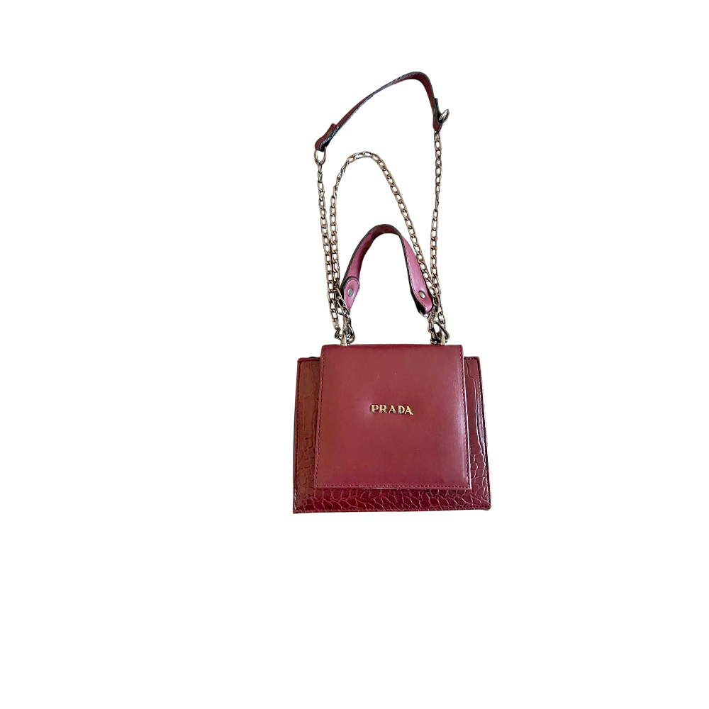 Tyylikäs punainen käsilaukku ketjuhihnalla.