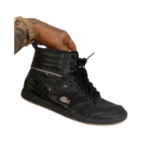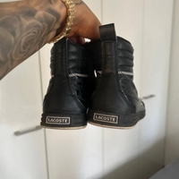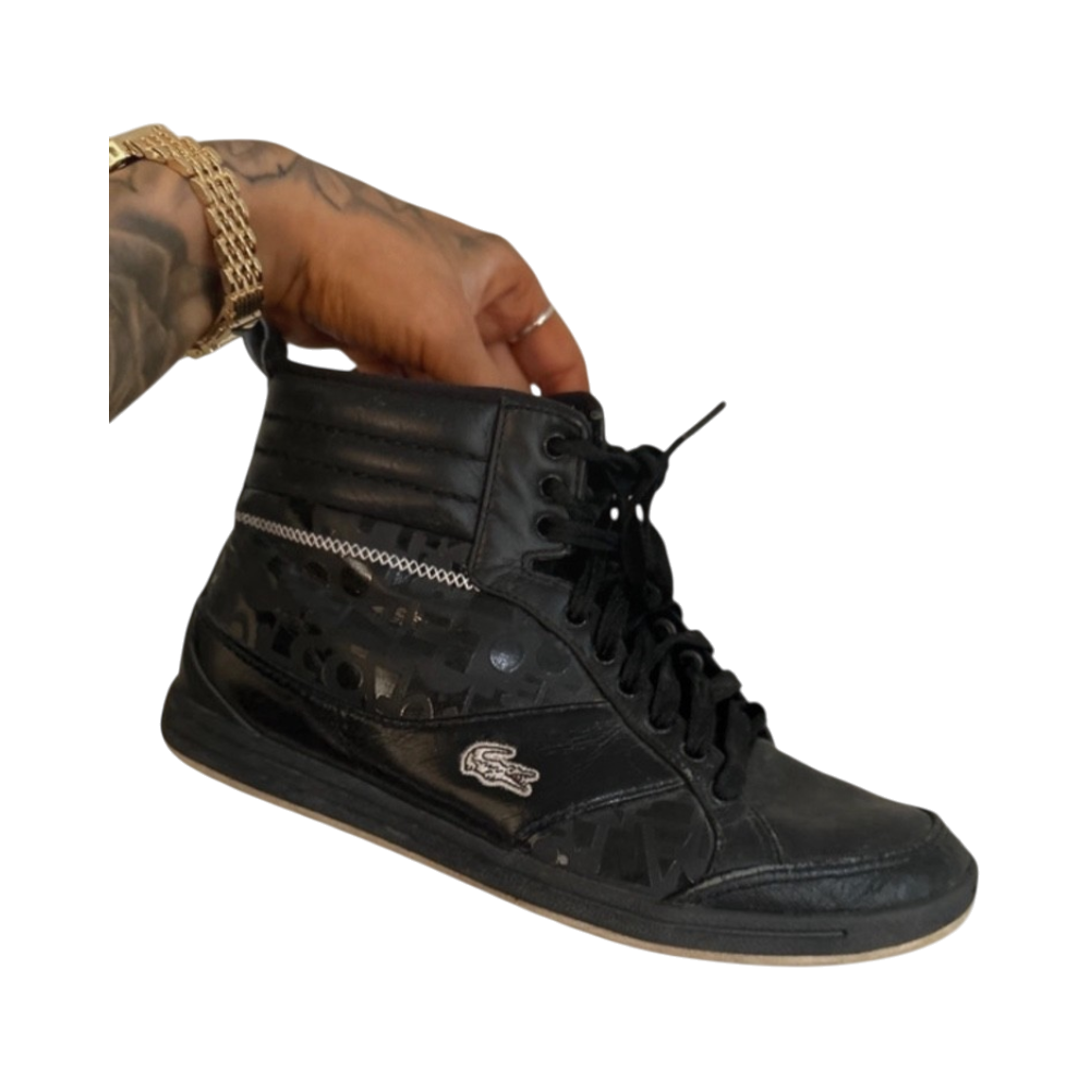 Black Lacoste high-top sneakers, leather, crocodile logo, good condition.