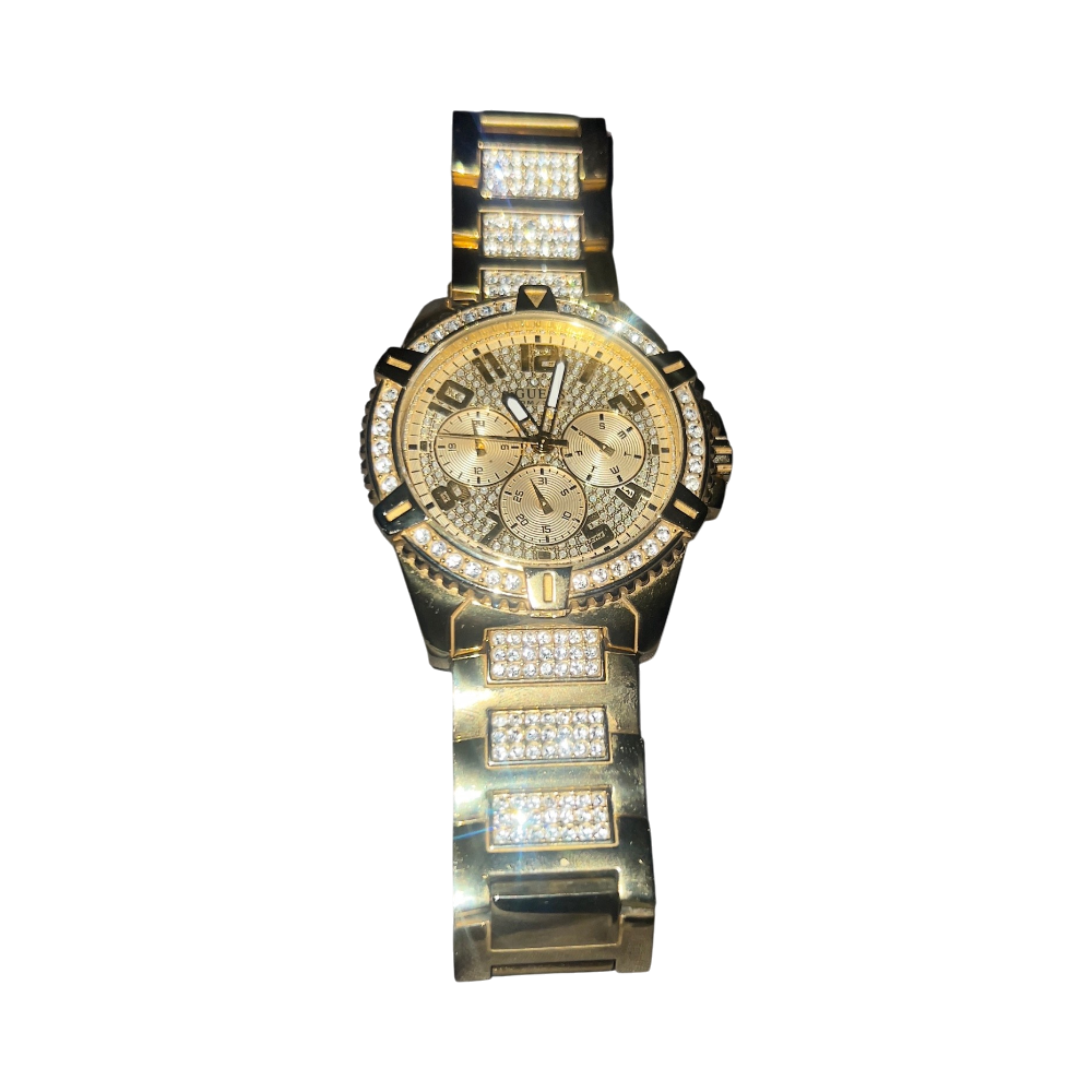 Kultainen Guess-kello strassikoristein, hieman naarmuja on mutta kellotaulu hyvässä kunnossa.