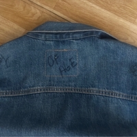 Levi’s premium jean jacket. Washed denim jacket, relaxed fit. Signed by LA artist Lovemansuy.