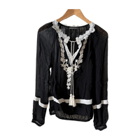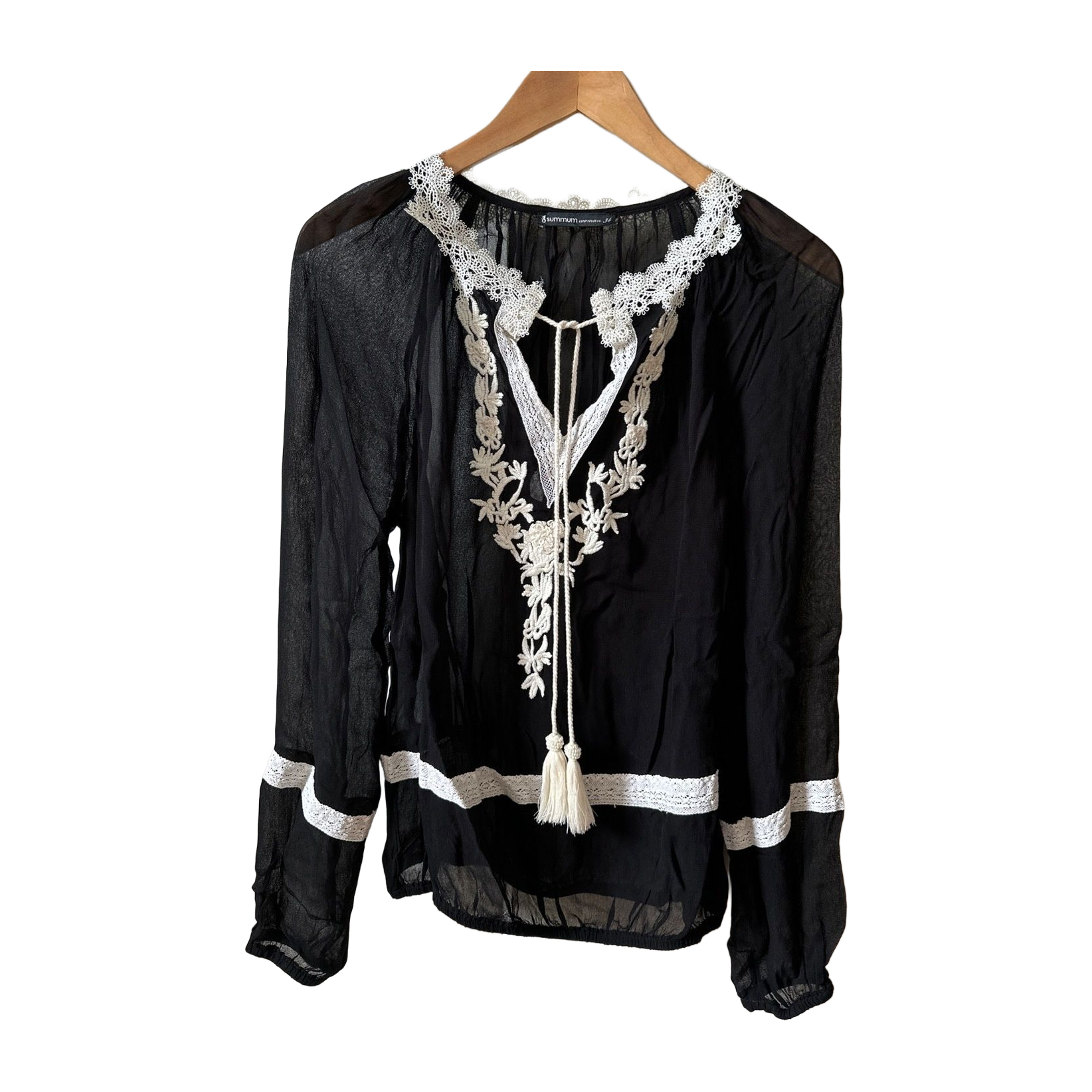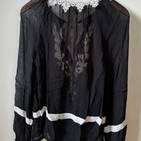 Aplikoitu, läpikuultava musta pusero,