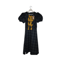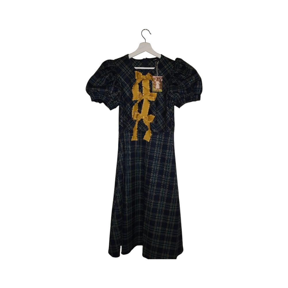 Tummansininen ruudullinen M (vastaa kokoa S) kokoinen midimekko ruseteilla. Hutiostos. Ei ole käytetty kertaakaan (väri ei itselle sopiva). Lyhyet pussihihat, takana, selässä vetoketju, edessä kolme isoa rusettia. Koiratalous. Voidaan tarvittaessa sopia noudosta akselilla Kerava-Korso.
