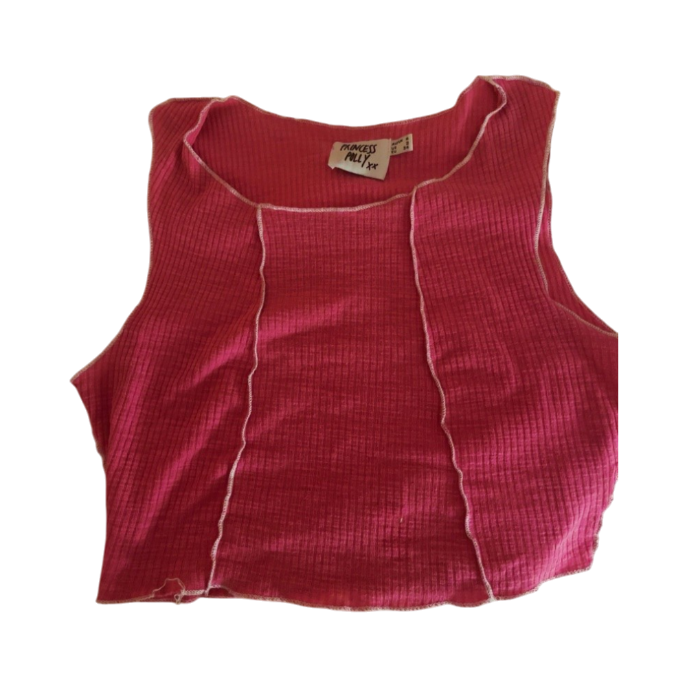 Lyhyt ribbinen hihaton toppi, fuksia väri.