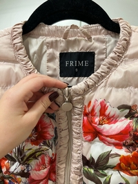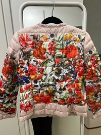 Beige toppatakki värikkäällä kukkakuosilla, vetoketjulla. Ei vikoja