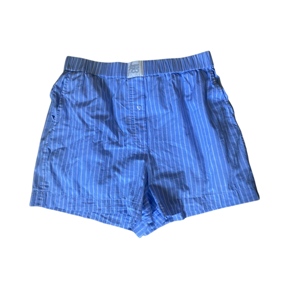 Vaaleansininen - valkoinen raita kuosi, S koko ja sellainen oversize boxer fiilis. Vähän käytin eli hyvä kunto. Ovh Stockmannilta noin satasen uutena, laadukkaan oloiset.