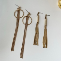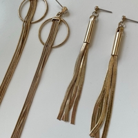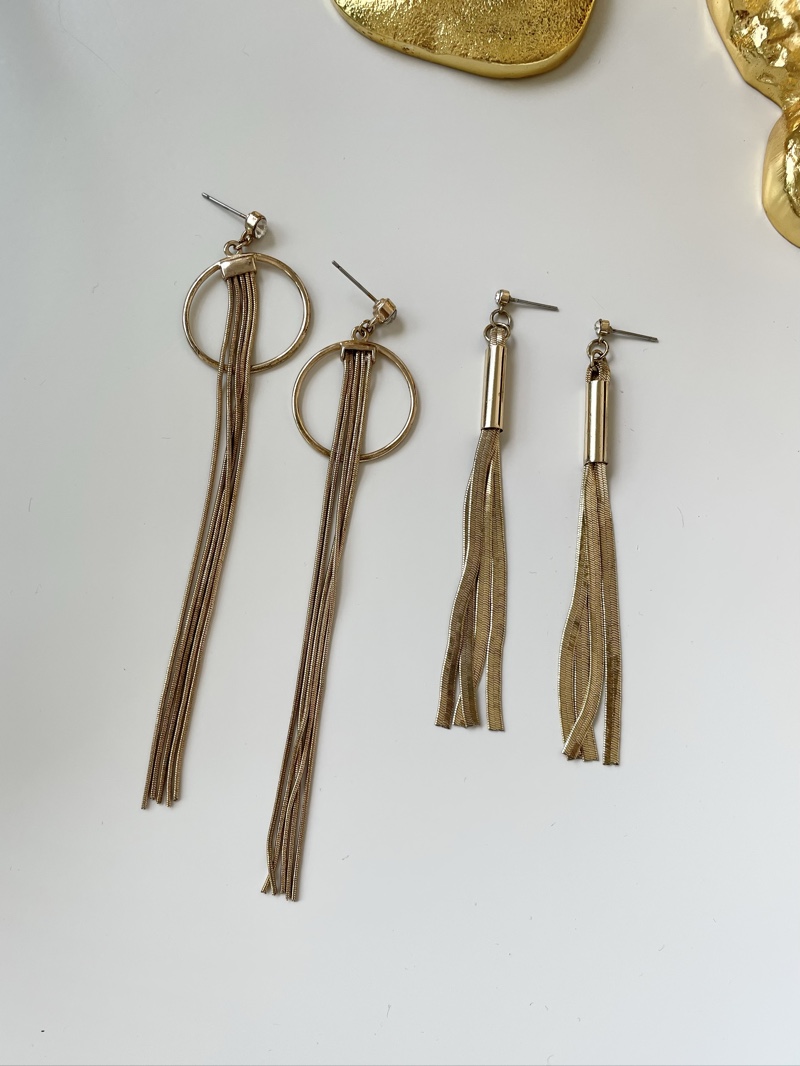 Kahdet Gina Tricotin kultaiset korvakorut, pituuksiltaan 12 cm ja 9 cm. Hyväkuntoiset, ihan vähän kuluneet muiden korujen seassa mutta ei ole juurikaan käytetty