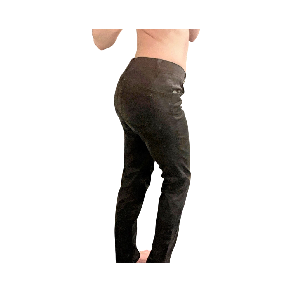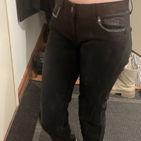 Tyylikkäät slim fit -farkut, joissa koristenauhaa taskuissa