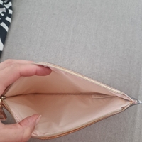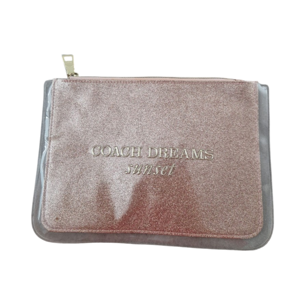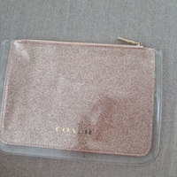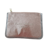 Vaaleanpunainen glitterinen toilettilaukku, vetoketju, sisätaskuton.