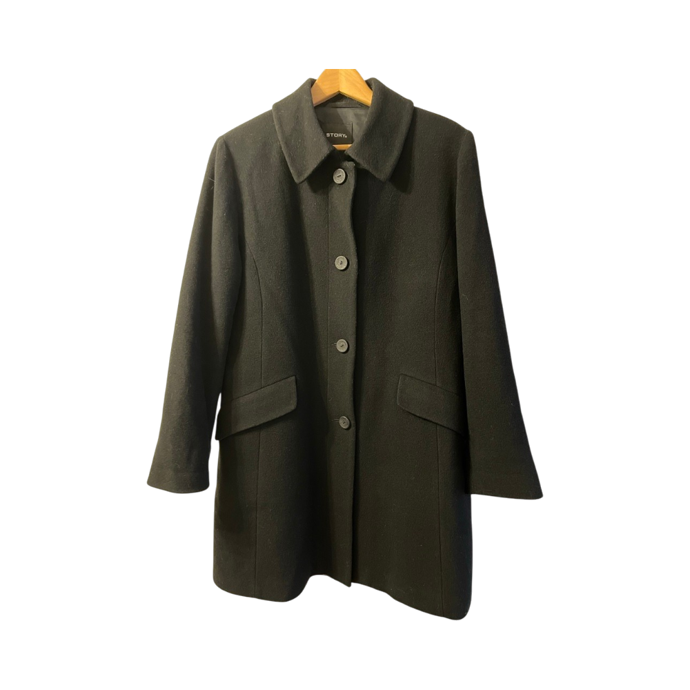 Lyhyt musta villasekoitepäällystakki, napit edessä, taskut. Uusi ilman hintalappua, ostettu liian pieni alunperin. Toivottavasti löytää uuden käyttäjän.