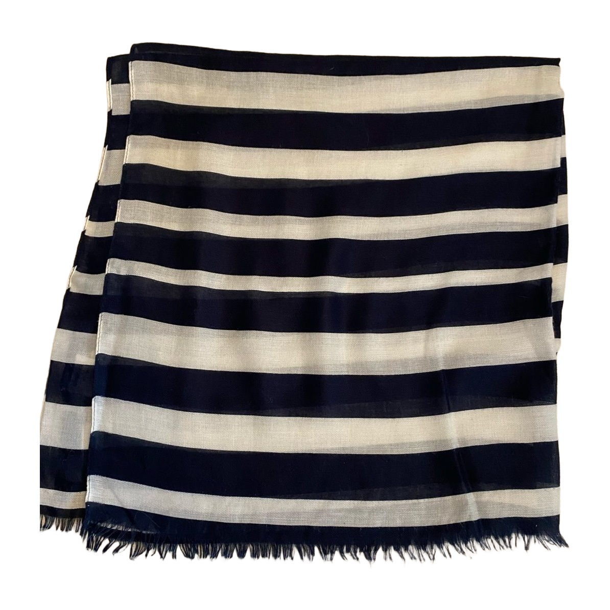 Pehmeä raidallinen huivi. Tummansininen/valkoinen