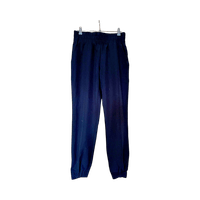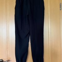 Mustat rennotulkohousut joustavalla vyötäröllä ja resoreilla lahkeissa. Pienehkö S koko