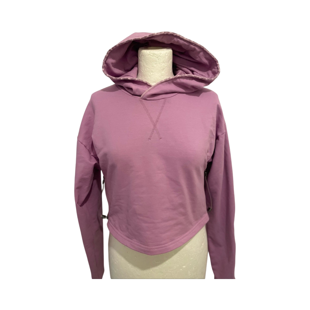 Liila huppari lyhyt malli, sivuissa vetoketjut, saa slimmimmän lookin.