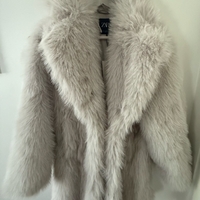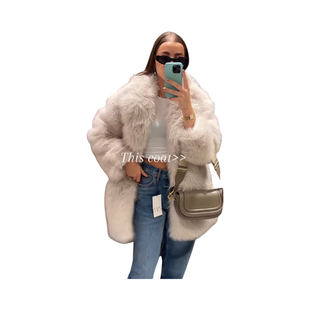 Zara vaalea tekoturkistakki suurella kauluksella.