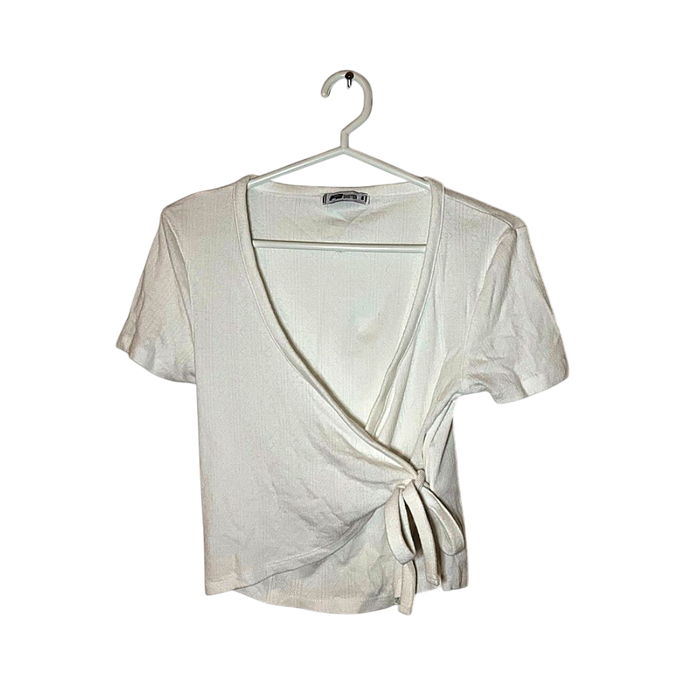 Kaunis valkoinen kietaisu t-paita.