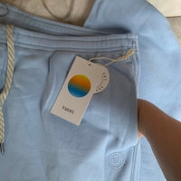 Ice blue / light blue sweatpants from Vuori, straight from California, a super premium & high regarded brand (some say it's better than Lulu). Super soft French terry. Pockets. High rise, adjustable drawcord. 70% cotton. Shorter length, perfect if you're under 170 cm. Size L.