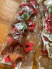 Koristeellisia jouluaiheisia pyykkipoikia Japanista. Kaksi viiden kappaleen settiä. Uudet.