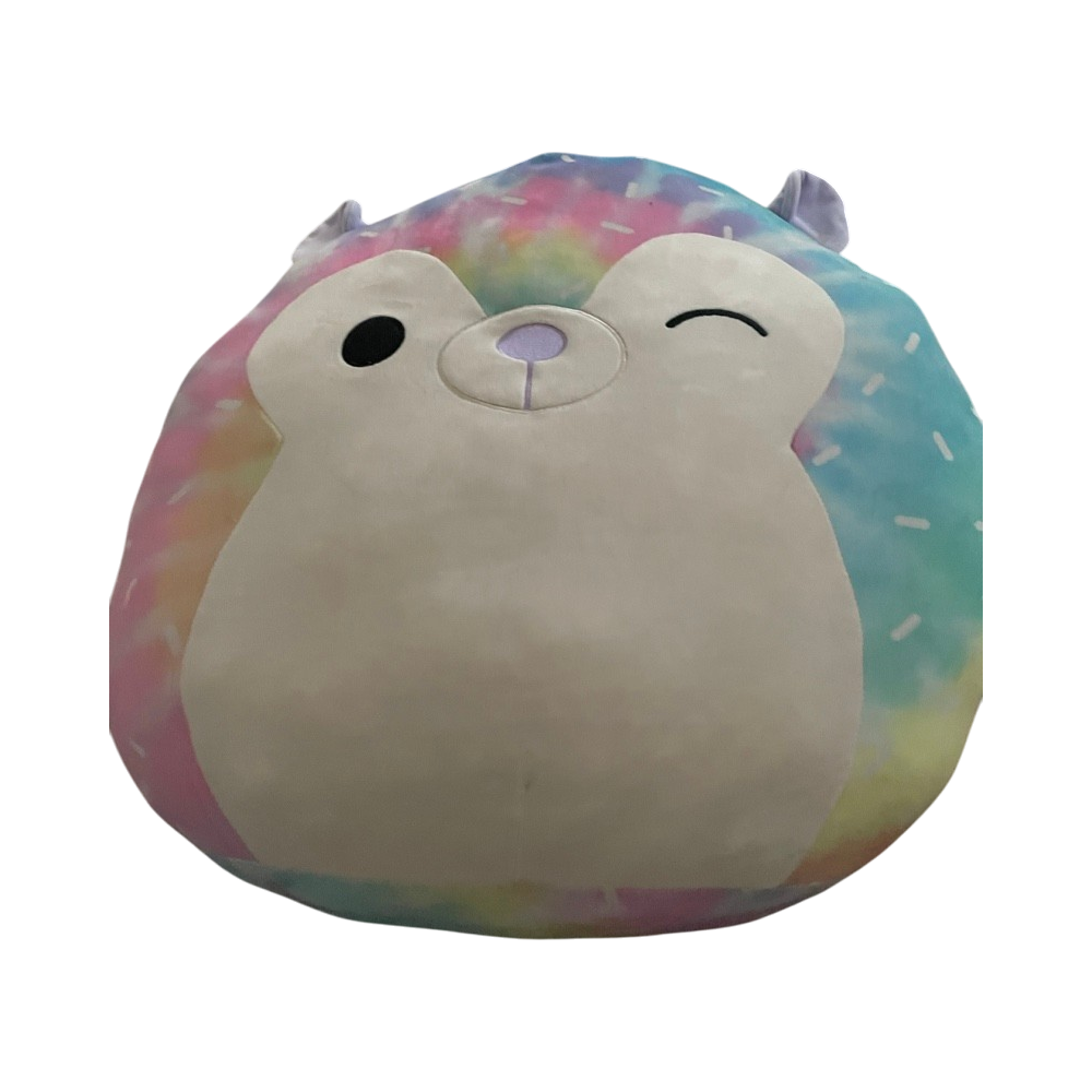 Suuri pehmeä Squishmallows-tyyny, värikäs ja hyväkuntoinen. Hieman tahraa löytyy.