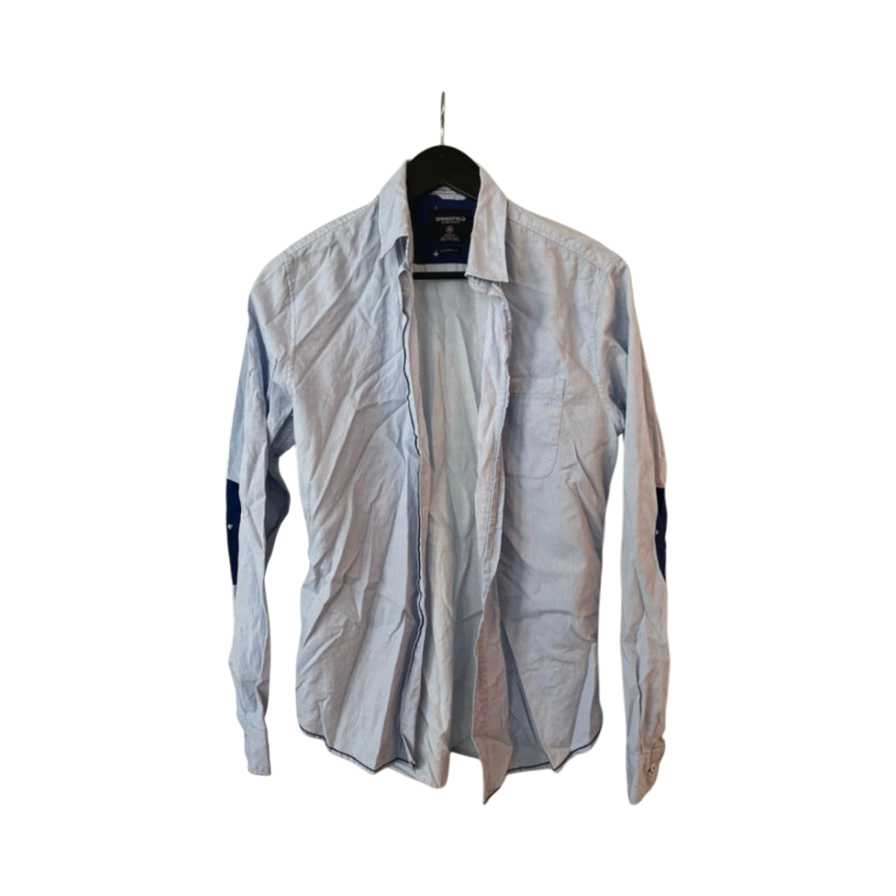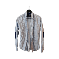 Paita on säilytyksestä todella ryppyyntynyt mutta on moitteettomassa kunnossa. Napit ovat kunnolla kiinni. Kyynärpäissä on yksityiskohtana ”paikat”, jotka kuuluvat paitaan.