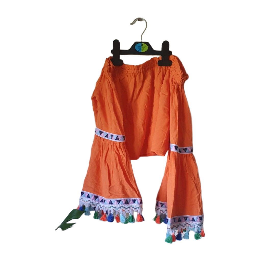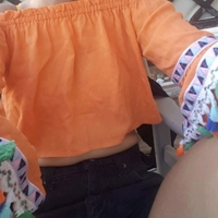 Ihana off shoulder kesäpaita, ollut vain kerran käytössä. Tosi lyhyt helma ja paita oli mulle aika tiukka olkapäistä. Kuvassa näkyvät oranssit olkaimet eivät ole osa paitaa. Koon arvioimiseksi: kuvan oton hetkellä olin vähän pienempi, n. S/36, kuin zadaassa nyt näkyvät mitat (nyt M/38).