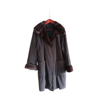 Viininpunainen ohut kevät/syksy juhlatakki. Pituus n. 95cm, leveys n. 68cm.