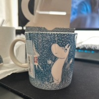 Blue ceramic mug featuring Moomin character illustration. NEW