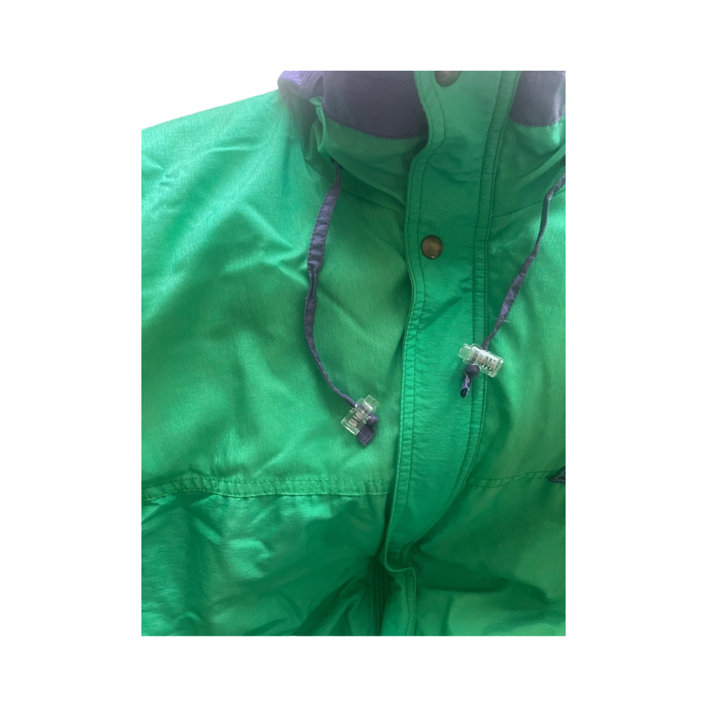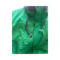 Malli on vyötärölle saakka tuo L, mutta ei haittaa, jos on väljä. Vyöllä saa kurottua kasaan. Yläosa on kasarin tyyliin reilu, niin sopii niin sutjakkaat kuin leveämmätkin hartiat.