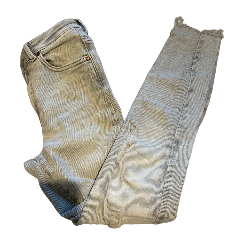 Vaaleat farkut revityillä yksityiskohdilla, käytetyt.