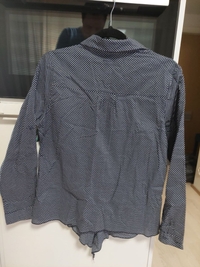 Pitkähihainen polka dot -kuvioitu paita solmulla edessä.