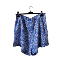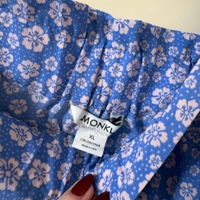 Siniset Monkin kukkakuvioiset shortsit. Korkea vyötärö, tosi mukavat päällä!