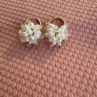 Valkoiset helmi-korvakorut kullanvärisillä yksityiskohdilla
