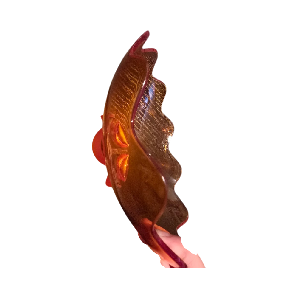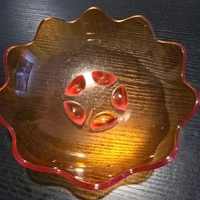 Oranssi pyöreä aaltoileva tarjoilukulho. Käytöstä tullutta naarmua. Halkaisija n. 17 cm.
