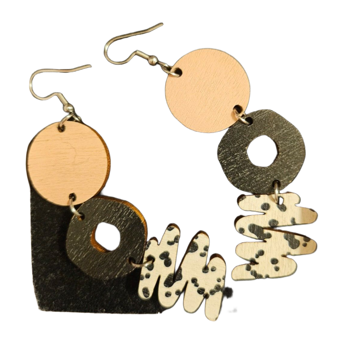 Maanantaimallin korupajassa tehdyt korvakorut koivuvanerista.