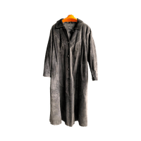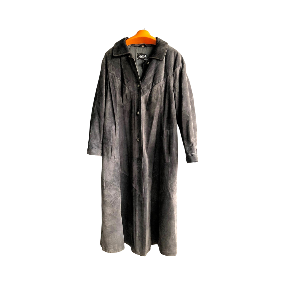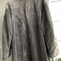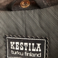 Kestilän pitkä retro siniharmaa mokkanahkatakki ohuella kangasvuorella. Koko L tai oversize M. Takki on ehjä ja siisti.