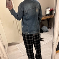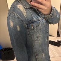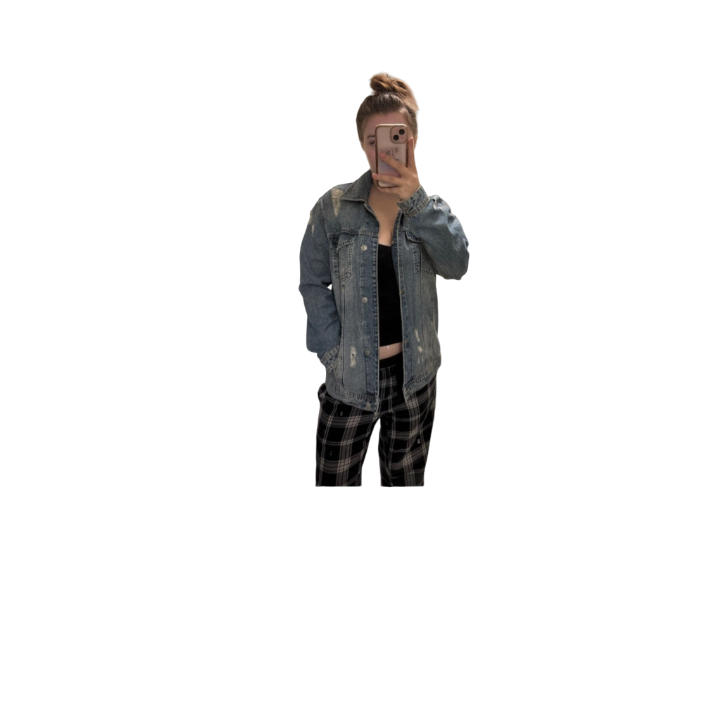 Sininen oversize-farkkutakki, revityt yksityiskohdat, casual-tyyli