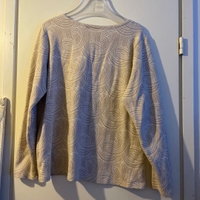 Neulepaita. Ihanan pehmeä ja kaunis kuvio neutraaleissa väreissä, beige ja valkoinen. Pinta eloisa. Liian vaalea väri mun kasvoille, muuten olisin pitänyt.