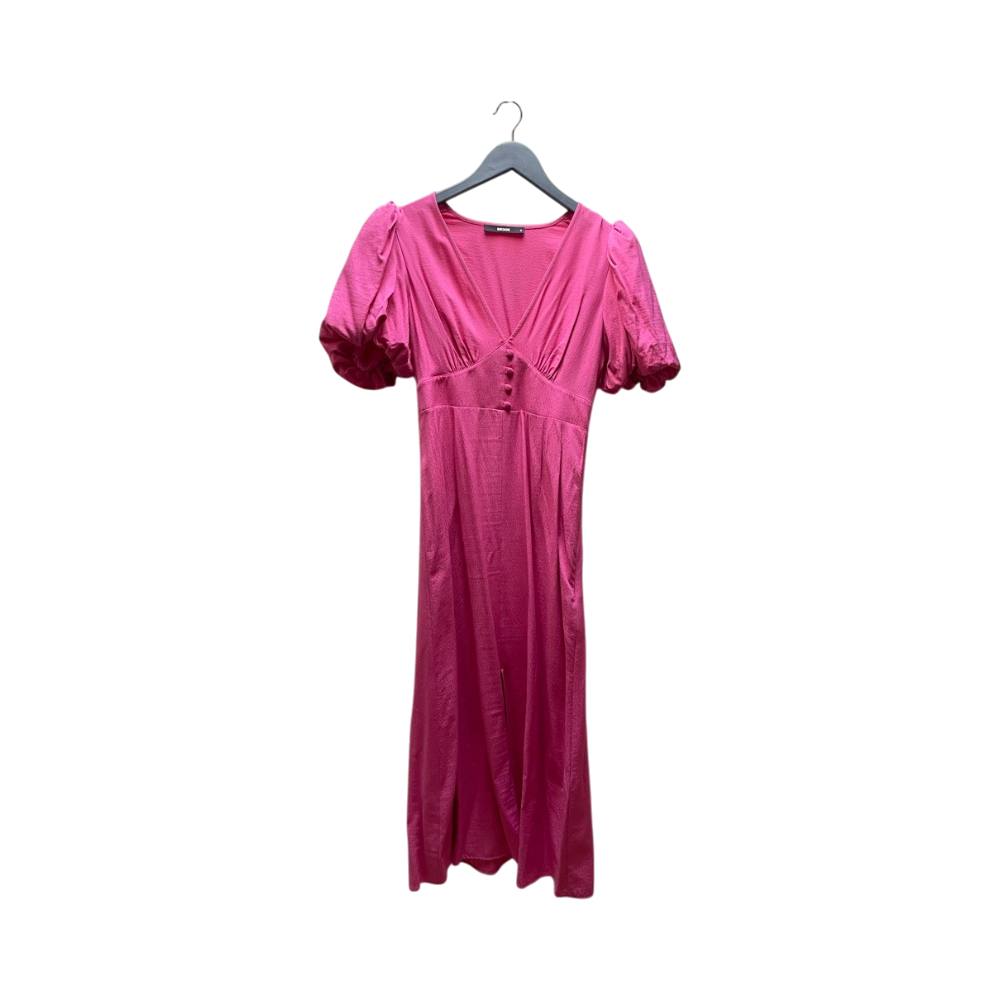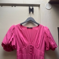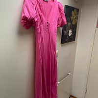 Naisten juhla mekko jossa puhvi hihat ja pienet olkatoppaukset