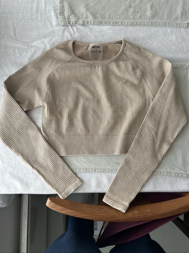 Aim’n Beige Cropped -pitkähihainen treenipaita / Koko M