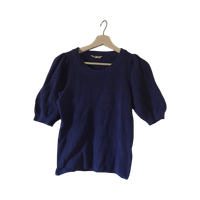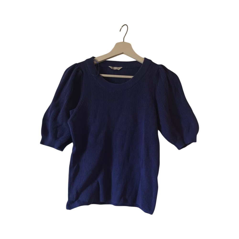 Lyhythihainen ribbineulepusero, hieman puhvihihat.