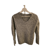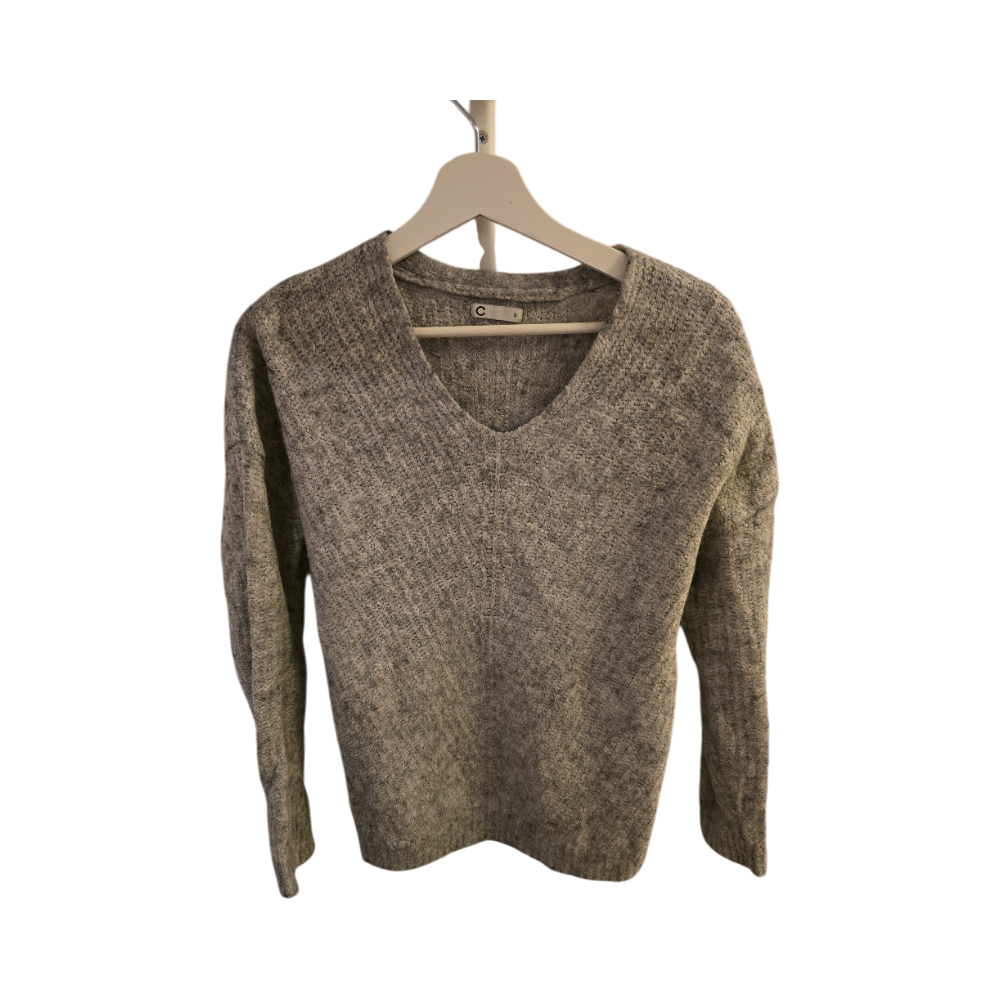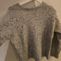Pehmeä harmaa ribbineule, rento istuvuus.
